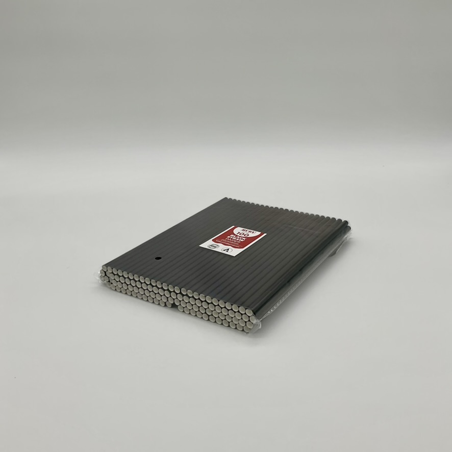 Unwrapped black plastic straws for cold drinks