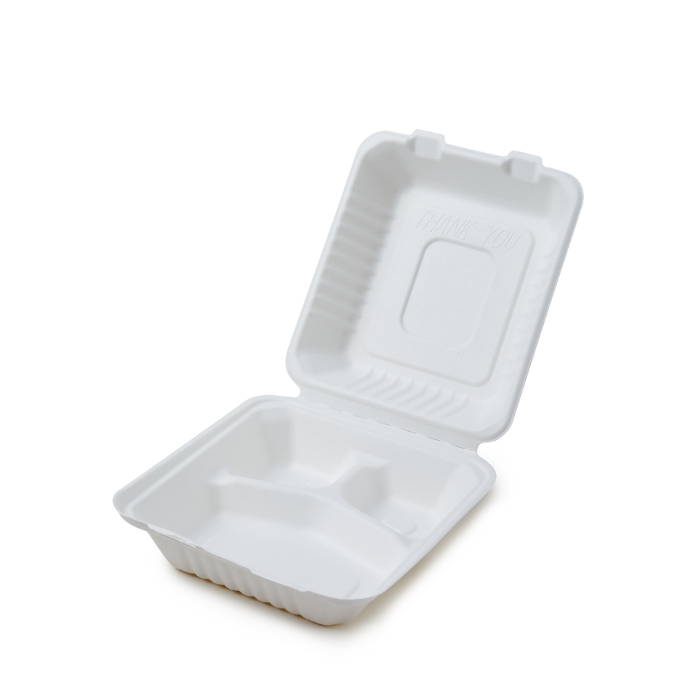 Sugarcane Clamshell 8in 3-Comp 0.8L